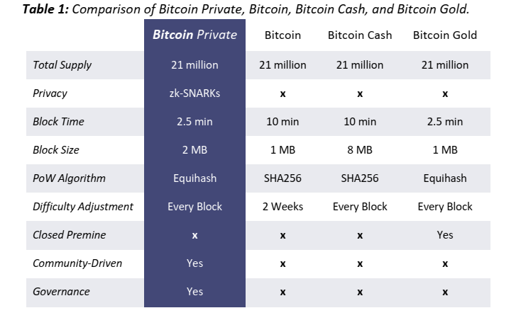 In 2016, the founders of zk-SNARKS developed Zcash, the first cryptocurrency using the technology. Only eight days after the launch, Rhett Creighton forked Zcash to form Zclassic. However, Zclassic suffered hugely from the same ideas that that drew it to greatness; absence of founders that resulted in lack of active development. Rhett Creighton merged Zclassic with Bitcoin to craft what has been cited to have huge potential to take cryptocurrency to where Satoshi espoused it to be. Note that this objective will be carried forward by the development team after Rhett was ousted from the development team for suggesting another fork. Here are some of the core components of Bitcoin Private and a comparison with other forks of Bitcoin.